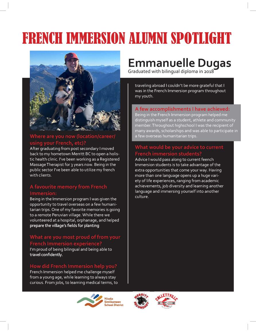 French Immersion is available from K-12 in Nicola Similkameen School District #58.
